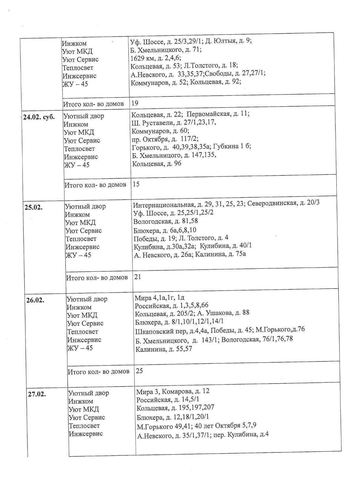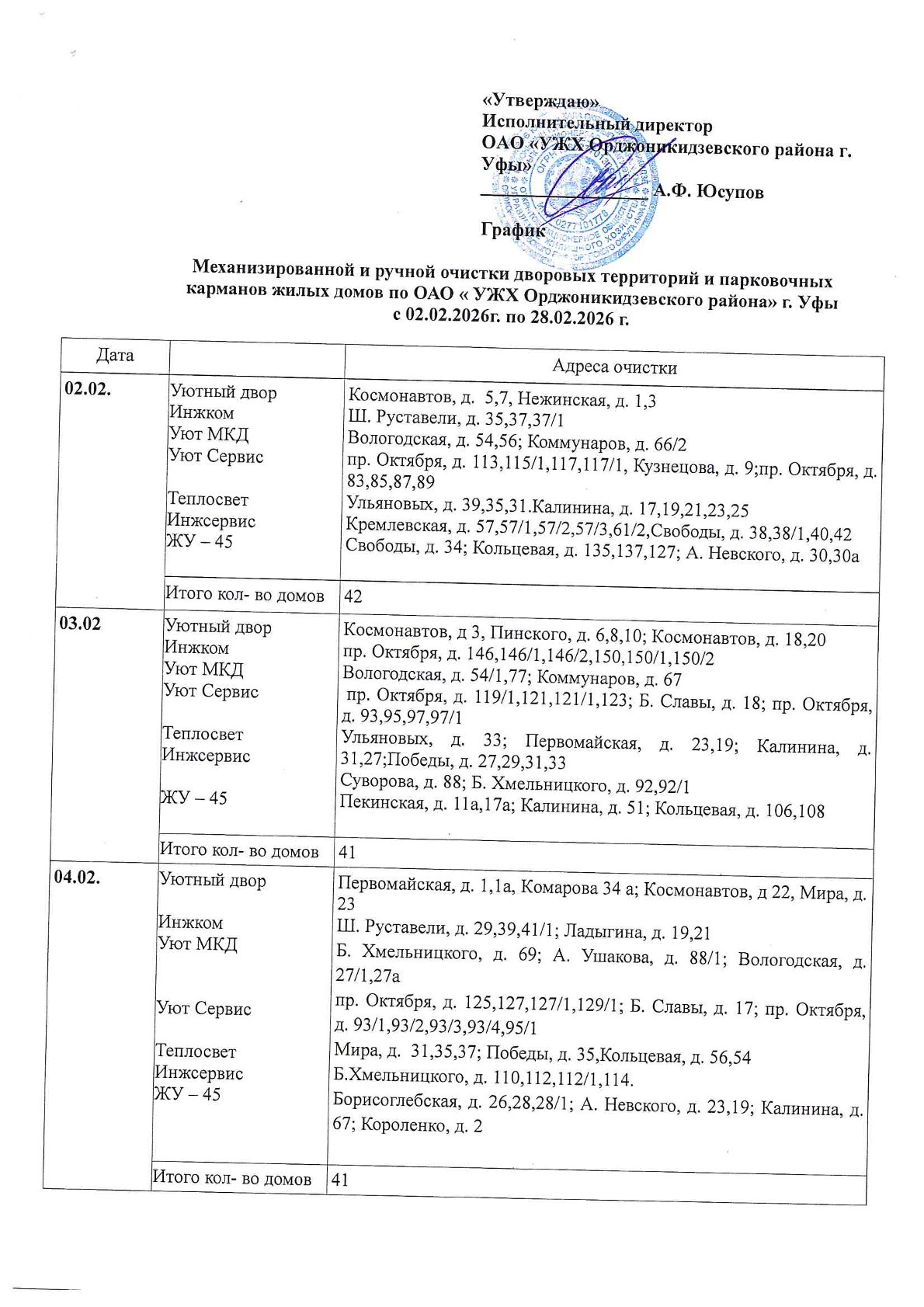 Публикуем графики комплексной очистки придомовых территорий многоквартирных домов на февраль 2026 года!