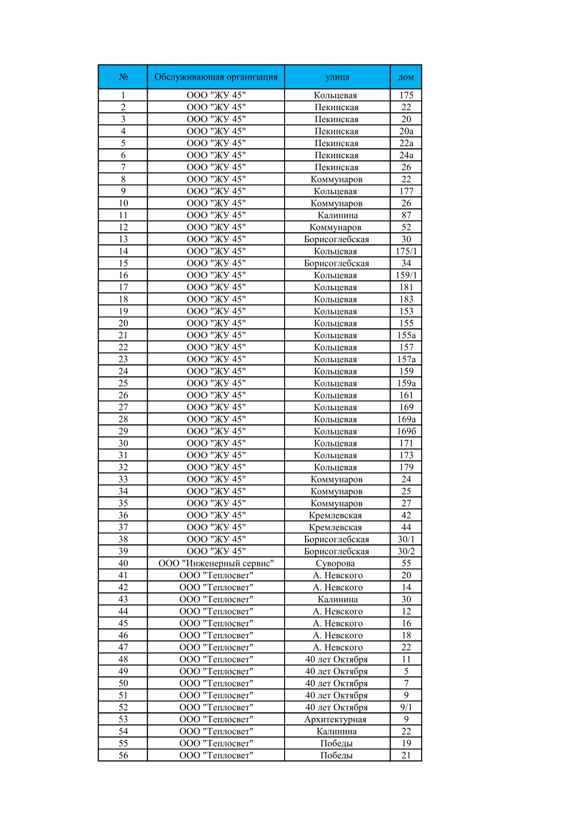 Адреса, которые попадают под опробование системы теплопотребления, указаны в прикрепленных списках.