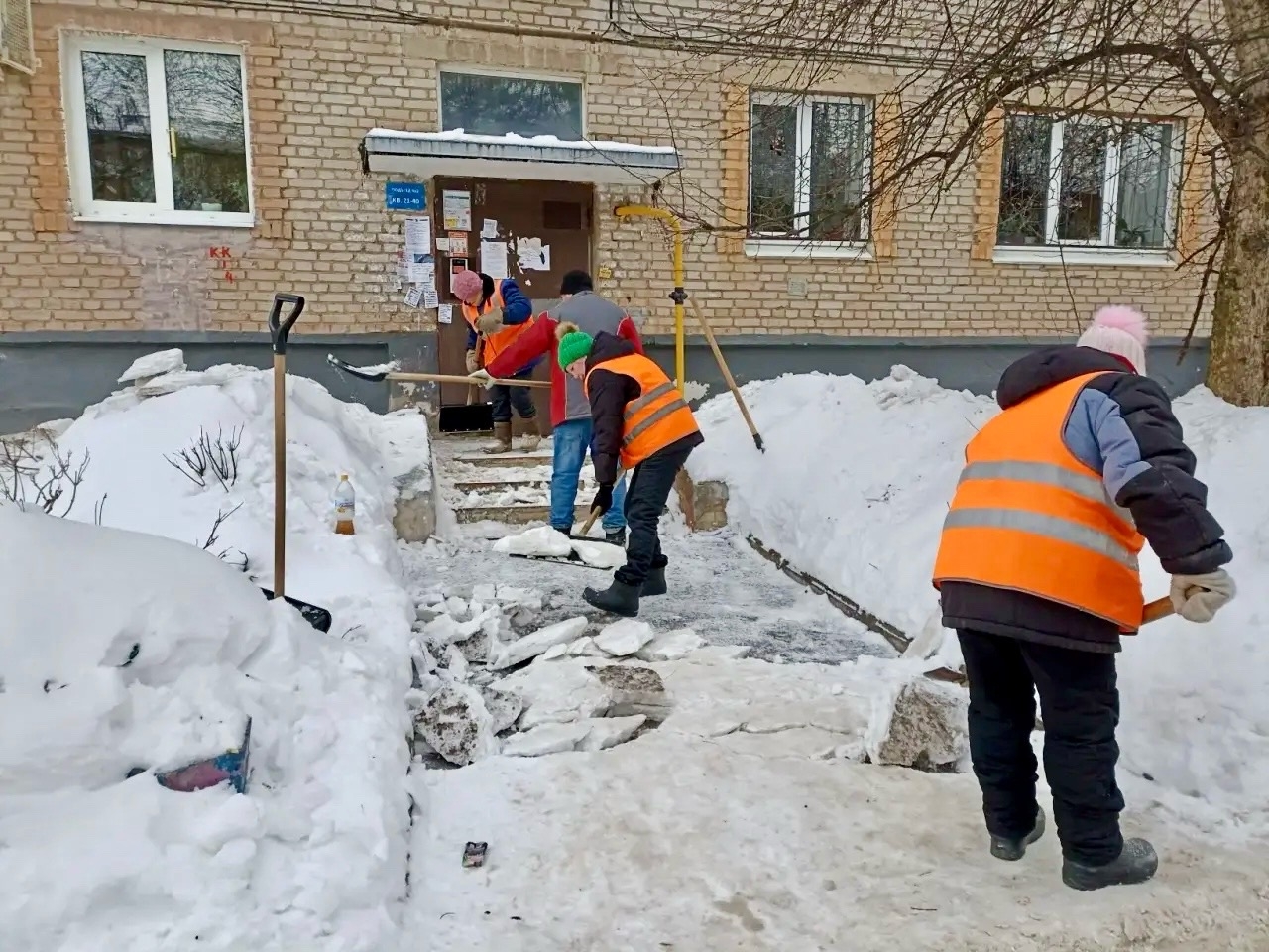 Особое внимание уделяется безопасности «сверху»: наши кровельщики регулярно очищают крыши и подъездные козырьки от наледи. Для пешеходов мы ежедневно проводим посыпку скользких участков противогололедными материалами.
