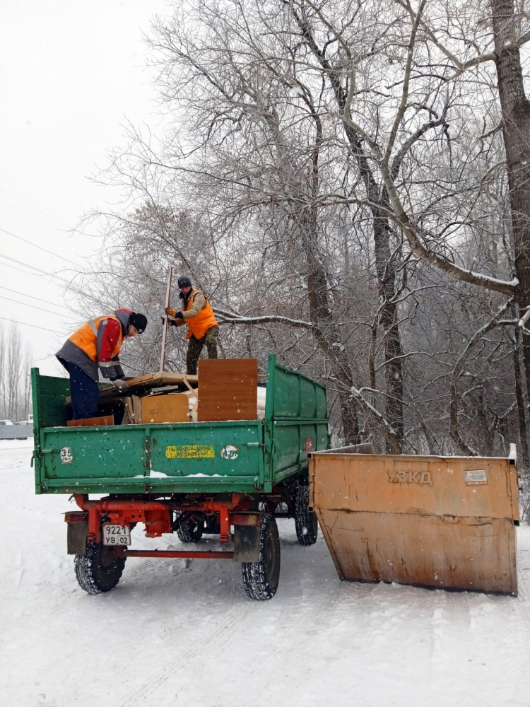 С раннего утра сотрудники ЖЭУ нашего района проводят уборку КГМ и складируют его в специальные привозные накопительные бункеры.