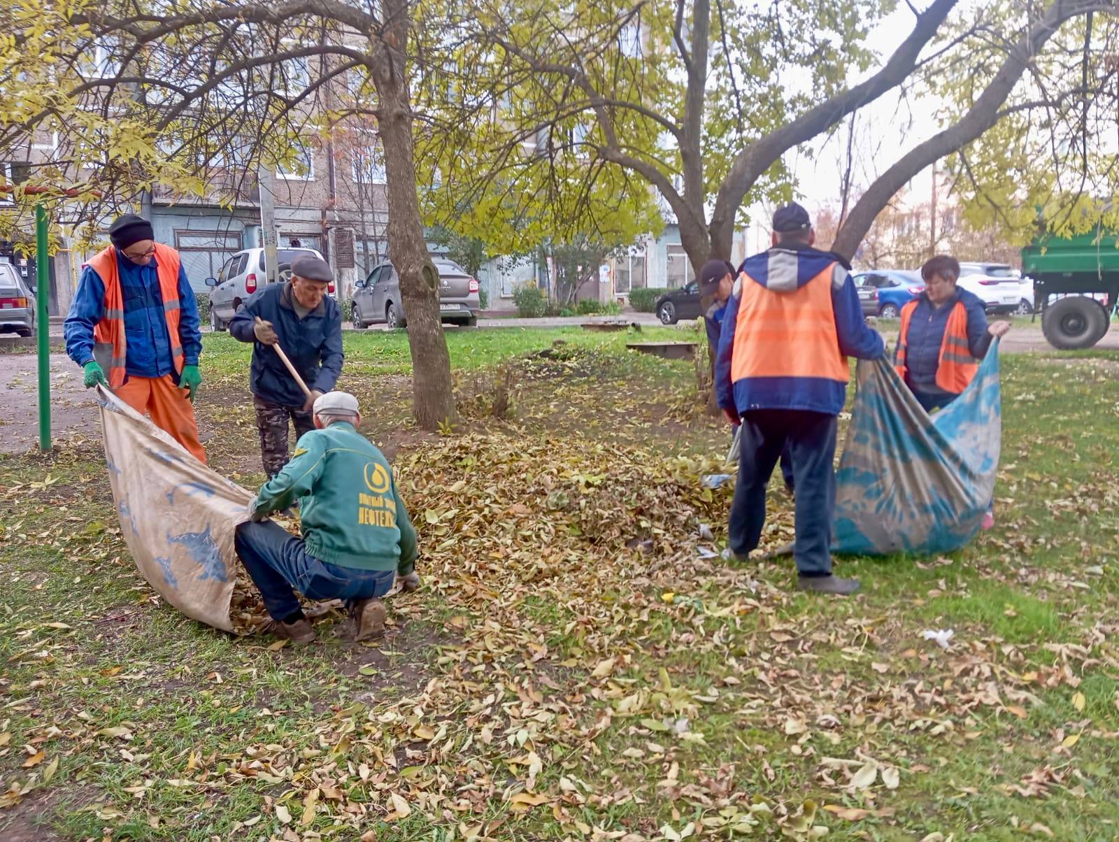 Сгребаем и убираем опавшую листву.