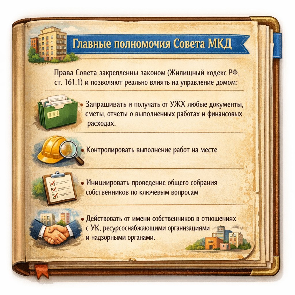 Именно поэтому мы подготовили целую серию информационных карточек, в которых четко рассказали об обязанностях, полномочиях и особенностях главного инструмента управления домом!