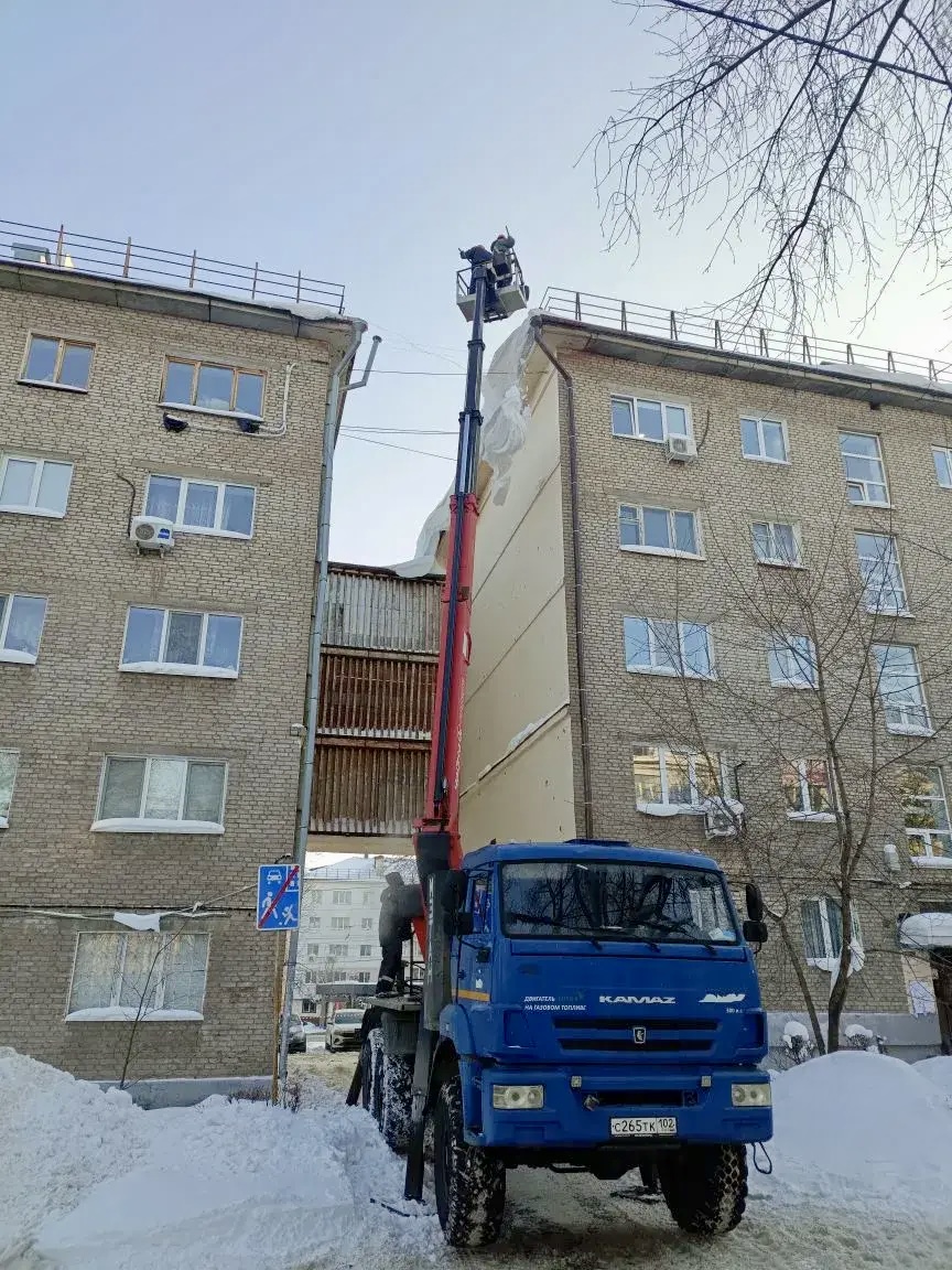 Сегодня с самого утра наши бригады кровельщиков активно работают во дворах. Мы проводим очистку крыш и козырьков зданий от снега и наледи. Эта важная профилактическая работа поможет избежать образования сосулек и неконтролируемого схода снежных масс.