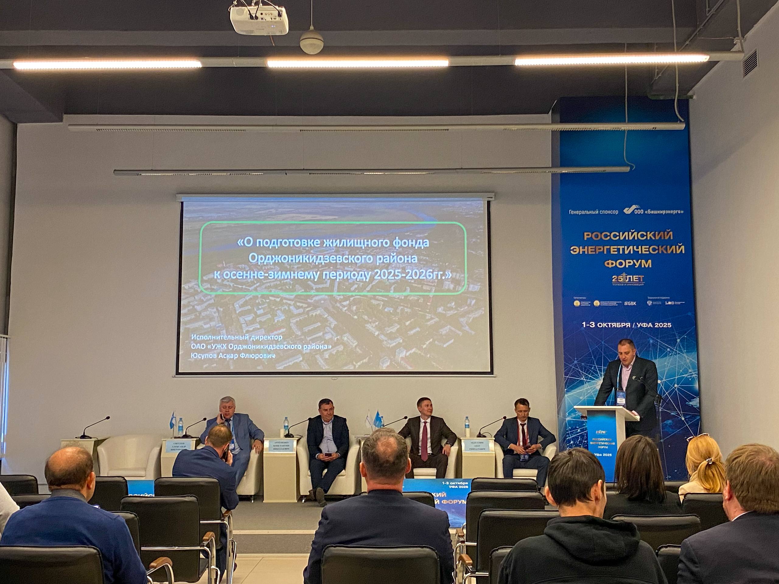 2 октября исполнительный директор УЖХ Орджоникидзевского района , Юсупов Аскар Флюрович, выступил с докладом на Российском энергетическом форуме.
