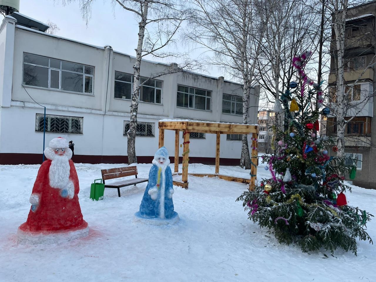 В нескольких дворах многоквартирных домов жителей встречают новогодние елки, ледовые фигуры и сказочные персонажи. А залитые ледяные пятачки и хоккейные коробки зовут прокатиться с ветерком ❄