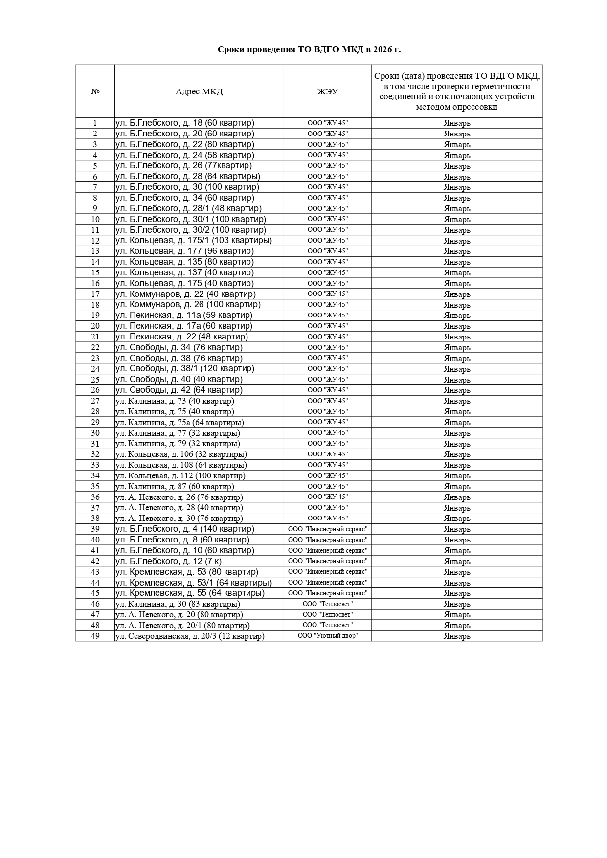 Январь: Техническое обслуживание внутридомового газового оборудования