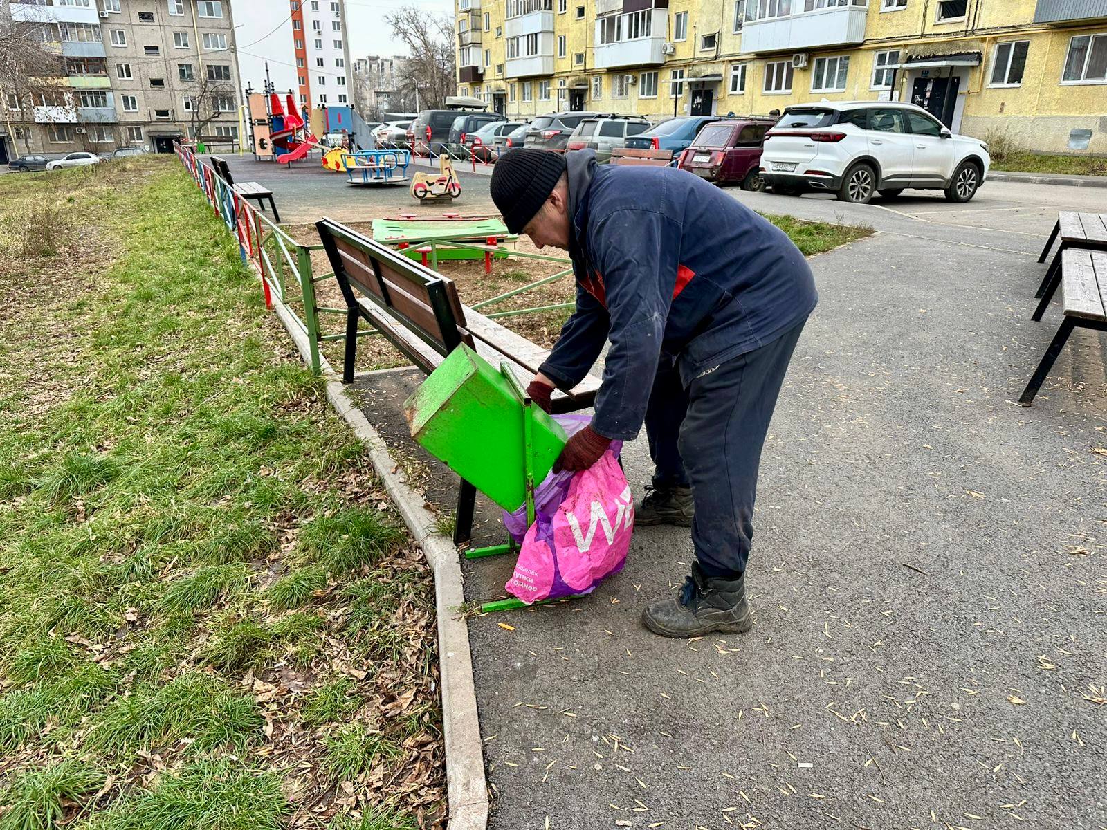 Сегодня во дворах кипит работа: подметаются дорожки, убирается мелкий мусор, вывозятся остатки осенней листвы, ветки и крупногабаритные отходы. Также приводим в порядок информационные доски объявлений и очищаем урны.
